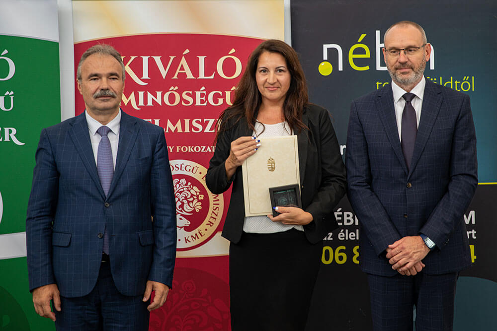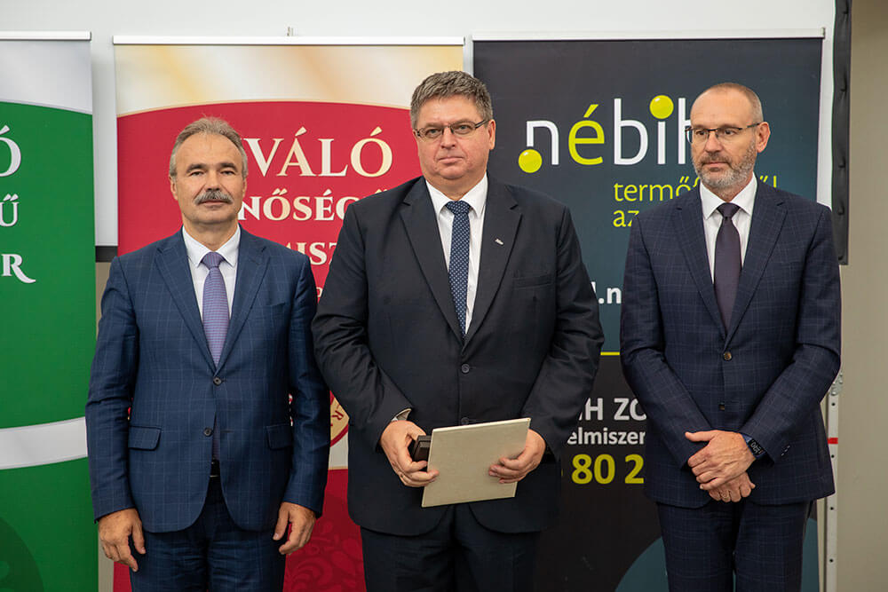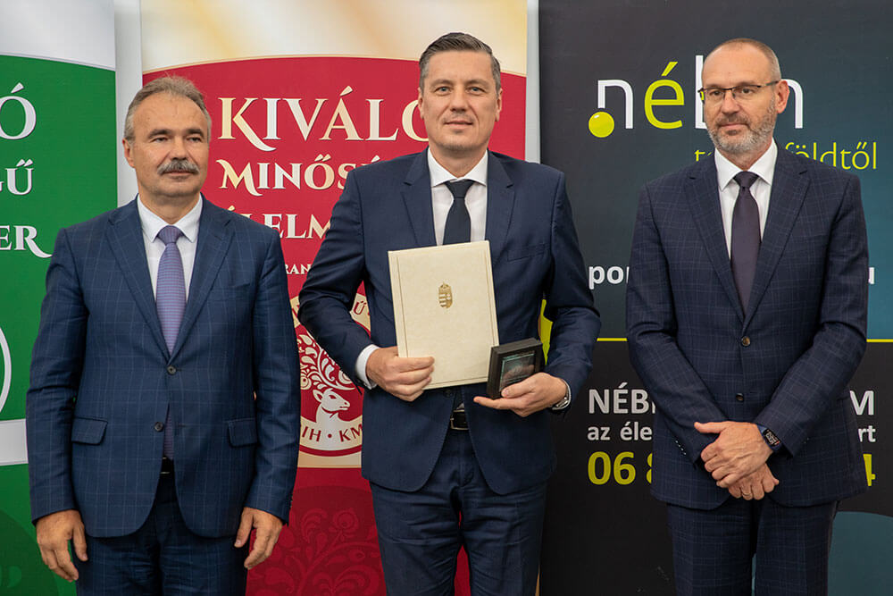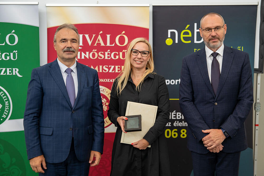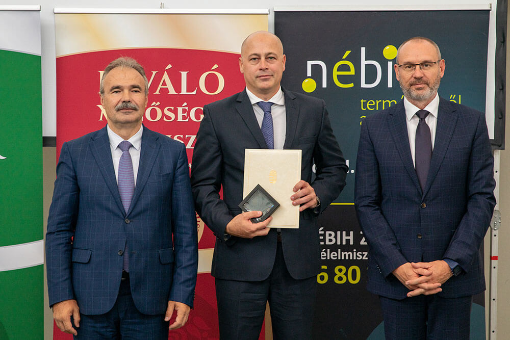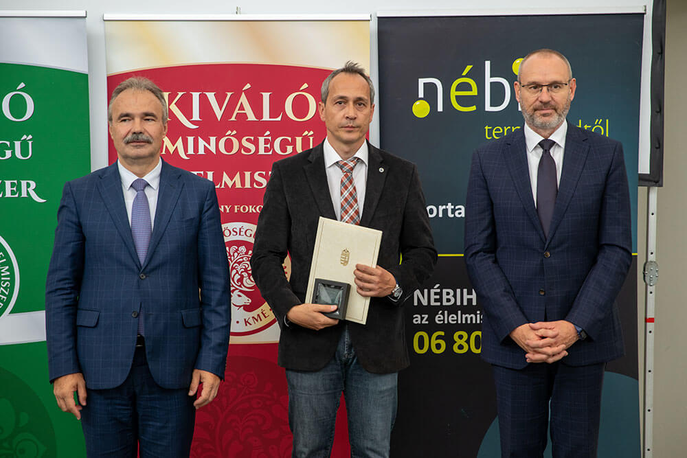 A Kiváló Magyar Élelmiszer arany fokozatának használati jogáról szóló oklevelet Dr. Nagy István agrárminiszter és Zsigó Róbert élelmiszerlánc-felügyeletért felelős államtitkár adta át.